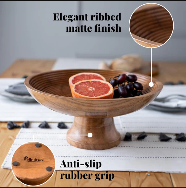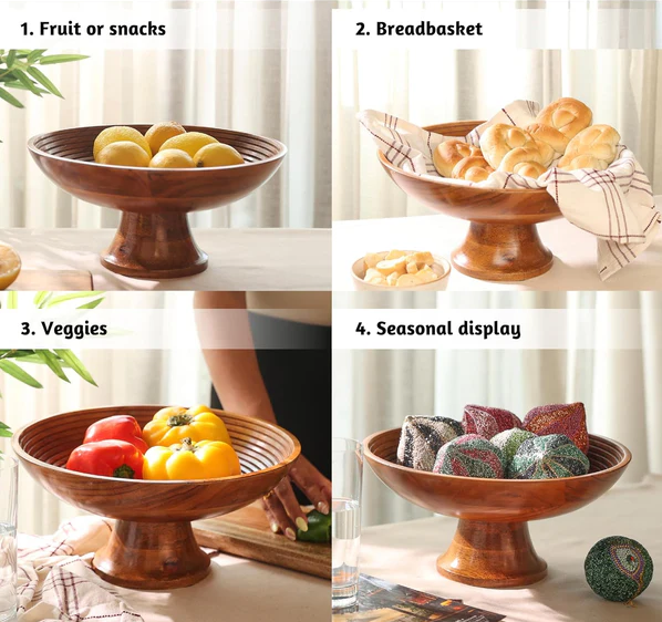 Best Selling Wooden Pedestal Fruit Bowl Wide Mouth Elevated Wedding Tabletop Decor Wholesale Storage Baskets for Home Event
