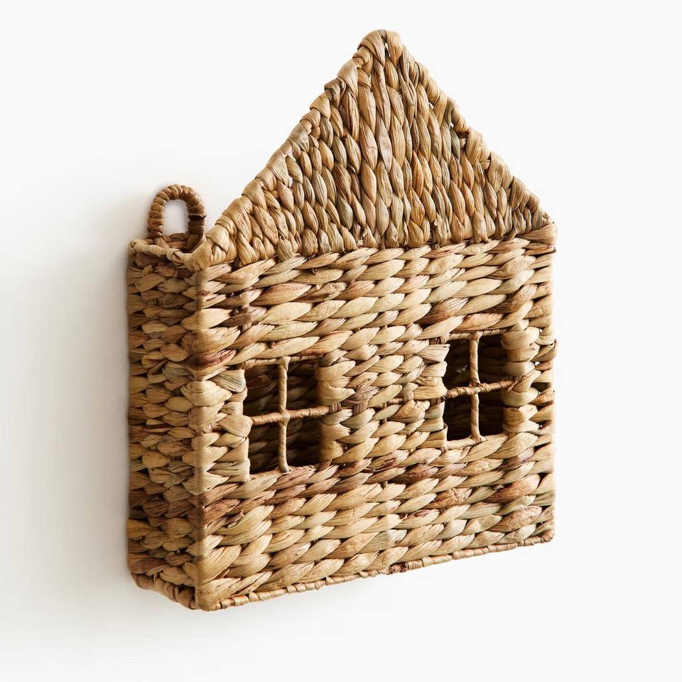 Best Selling Woven Water Hyacinth House-Shape Wall-Mounted Hanging Kid Basket Perfect For Baby Room Decor & Nursery