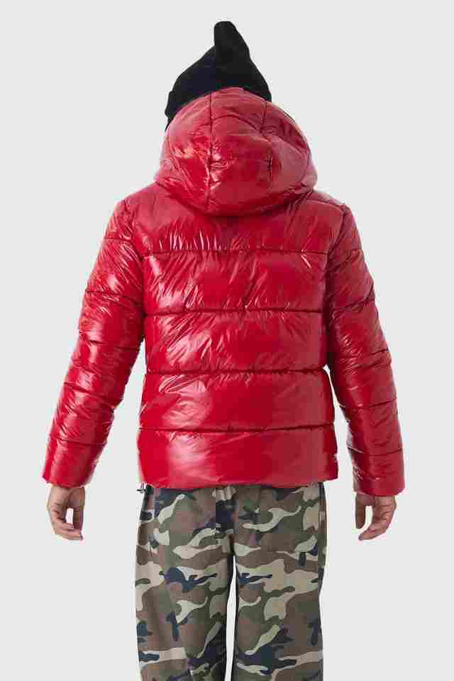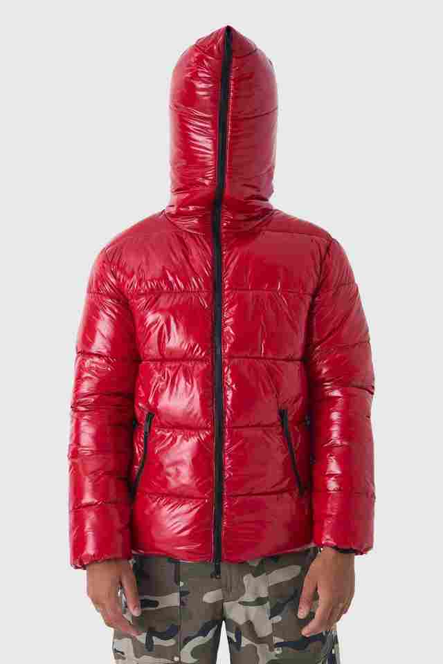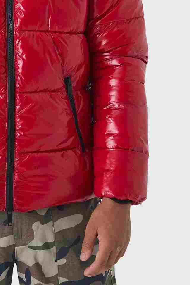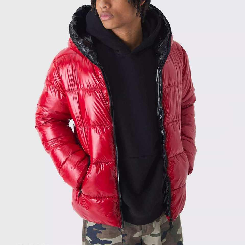 Best Selling Zip Hood Canvas High Shine Puffer Jacket Red Windproof Warm Winter New Style Quilted Bubble Fur Men's