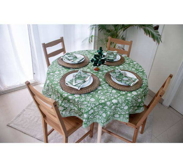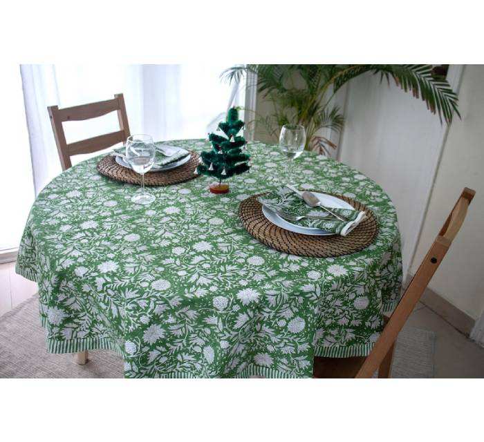 Best Selling Green Block Print Tablecloth India Floral Pattern Linen for Dining Table Decor for Home and Hotel Use