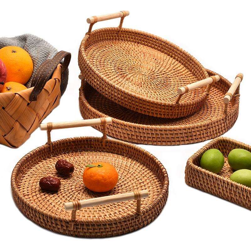 Best Selling in Vietnam Rattan Beat Selling Rattan Tray Bread Fruit Food Breakfast Tray Display Hot Sale