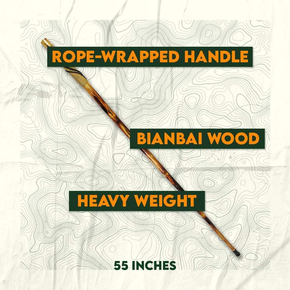 Best Selling Hand Carved Wolf Hiking Stick with T-Handle Weatherproof Rope Wrapped Metal Tip Customized Color & Size