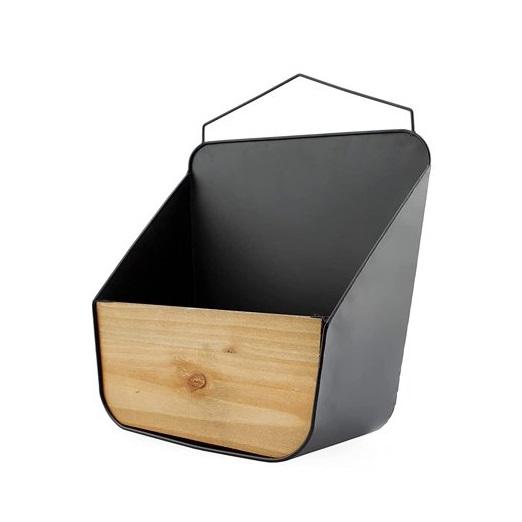 Best Selluing Metal & Wood Wall Hanging Planter Black Coated Finished Decorative Wall Mount Storge Planter Pot