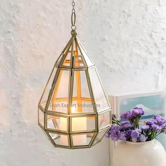 Best Shape Metal and Glass Hanging Tea Light Candle Holder Gold Color for Home & Wedding Lighting Decorative