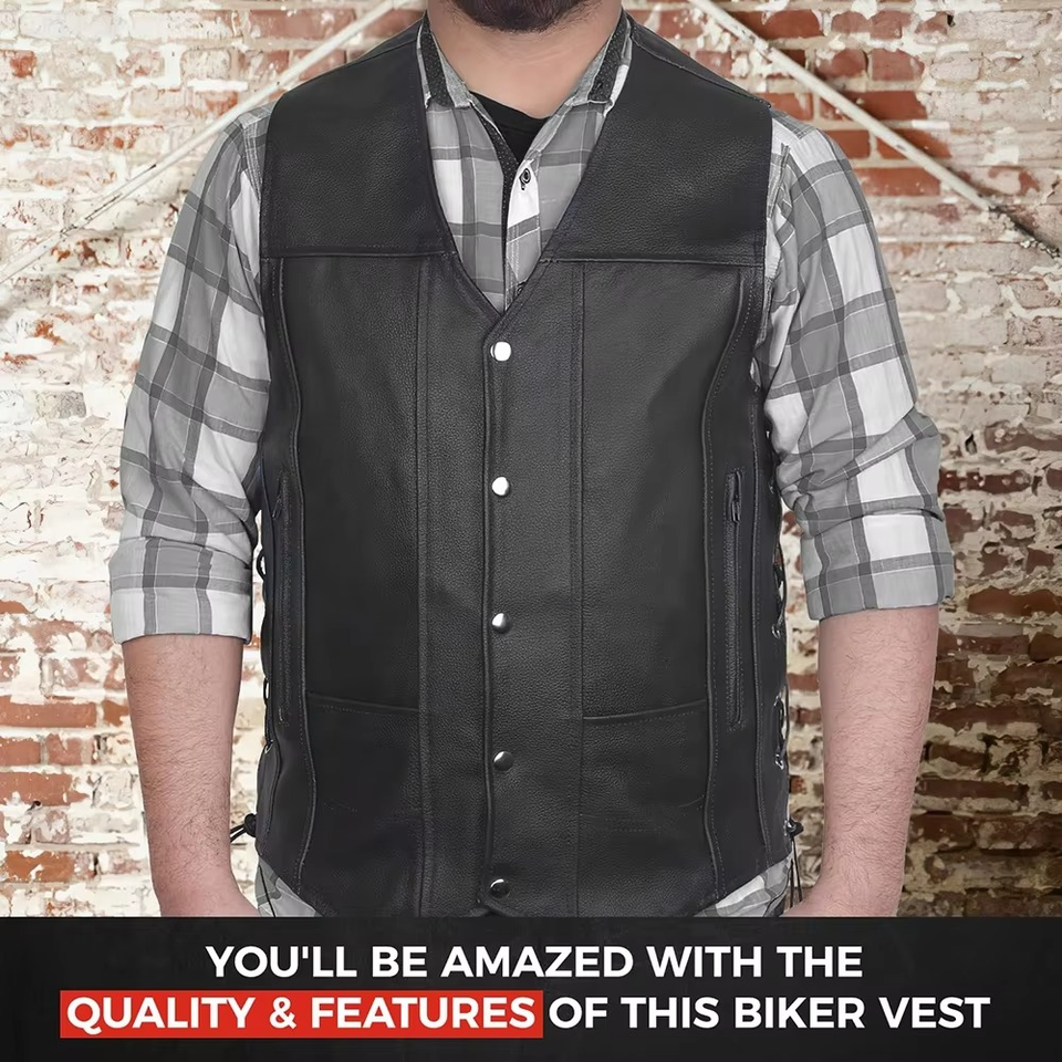 Best Style Men Vest Custom Made Latest Fashion Design Waterproof Windproof Adjustable Breathable New Motorbike Leather Waistcoat