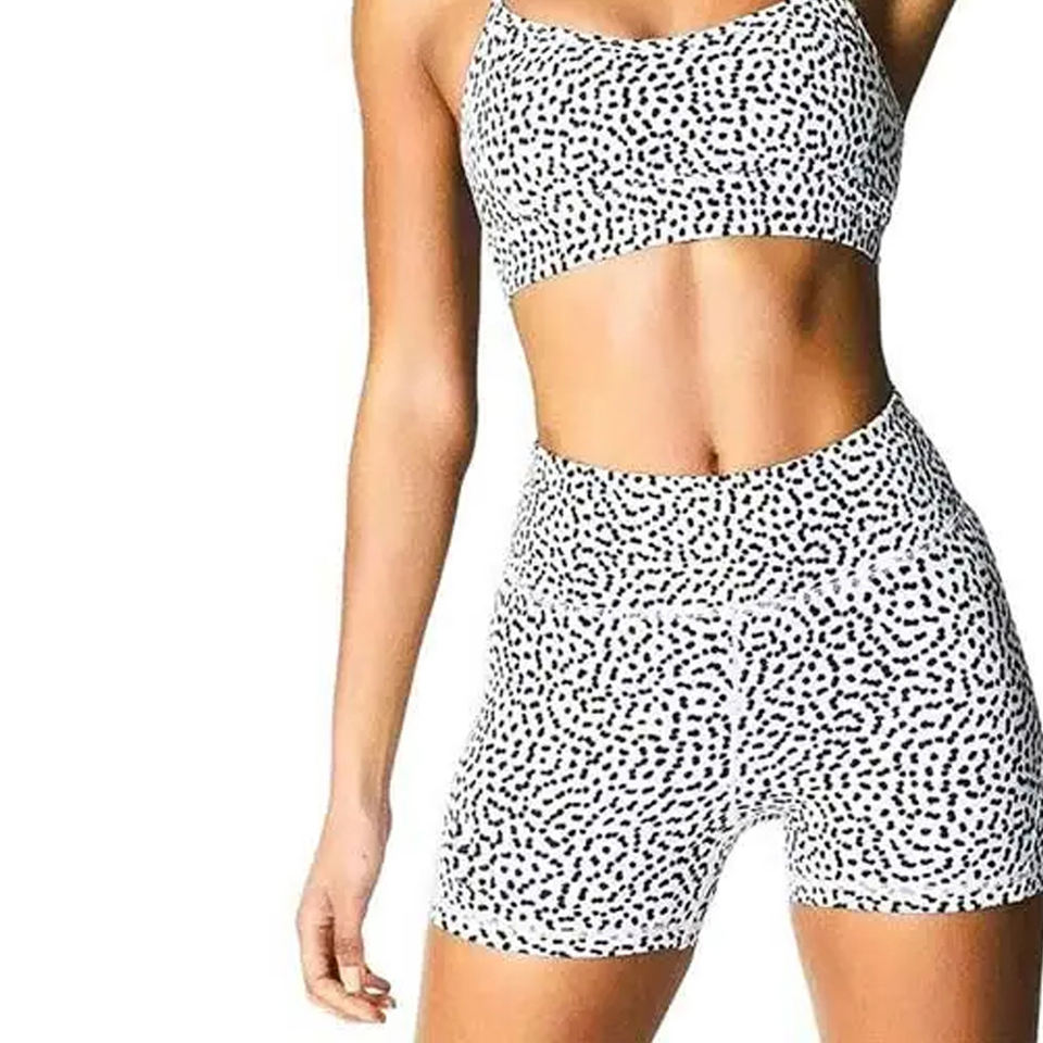 Best Supplier Good Seller Workout Set Sublimation Printed Two Piece Spandex Polyester Workout Shorts And Bra Sets