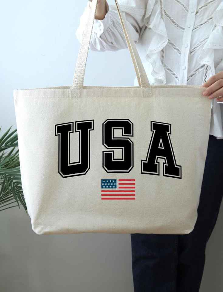 Best Supplier USA Flag Heart Map Canvas Tote Bag Reusable Cotton Shoulder Pouch Daily Grocery Shopping Handbag Travel Book Sack