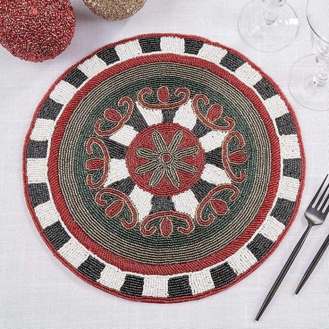 Best Theme Design Rounded Tableware Sustainable Decorative Placemat Glass Beads Place Mat Parties Other Functions Table Runners