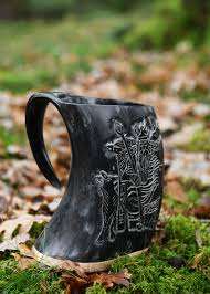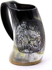 Best Viking Design Wooden Base Drinking Horn Mug Unique Ceramic Cups for Party Wholesale Price