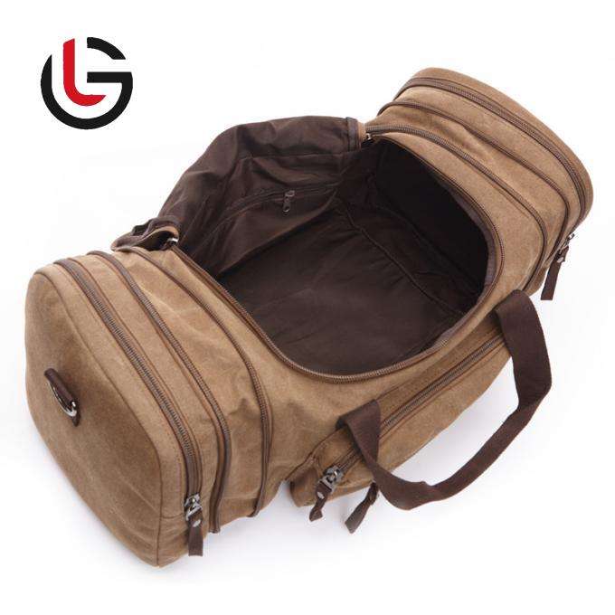 Best Waterproof round Waxed Cotton Travel Bag with Side Pockets Genuine Leather Trims Men Women Trip Organizer Canvas Material