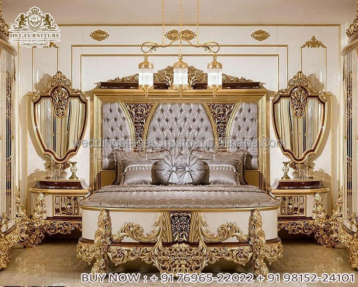 Best White Gold Carving Bedroom Furniture Set