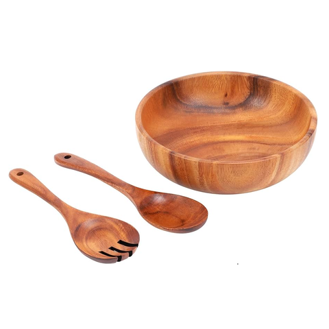 Best Wooden Salad Serving Bowl for Large Family Handcrafted Wooden Salad Bowls for Rustic Home Table Top Use With Spoons