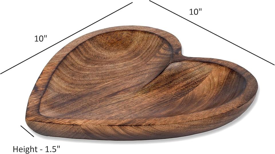 Best choice Mango Wood Heart Curved Shaped Decorative Bowl for Table Center pieces Home Party Wedding Decor