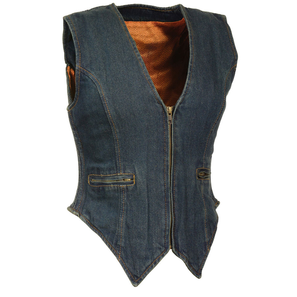 Best manufactured motorbike denim vest, moto bike medium washed denim vests for women, Prime Protection
