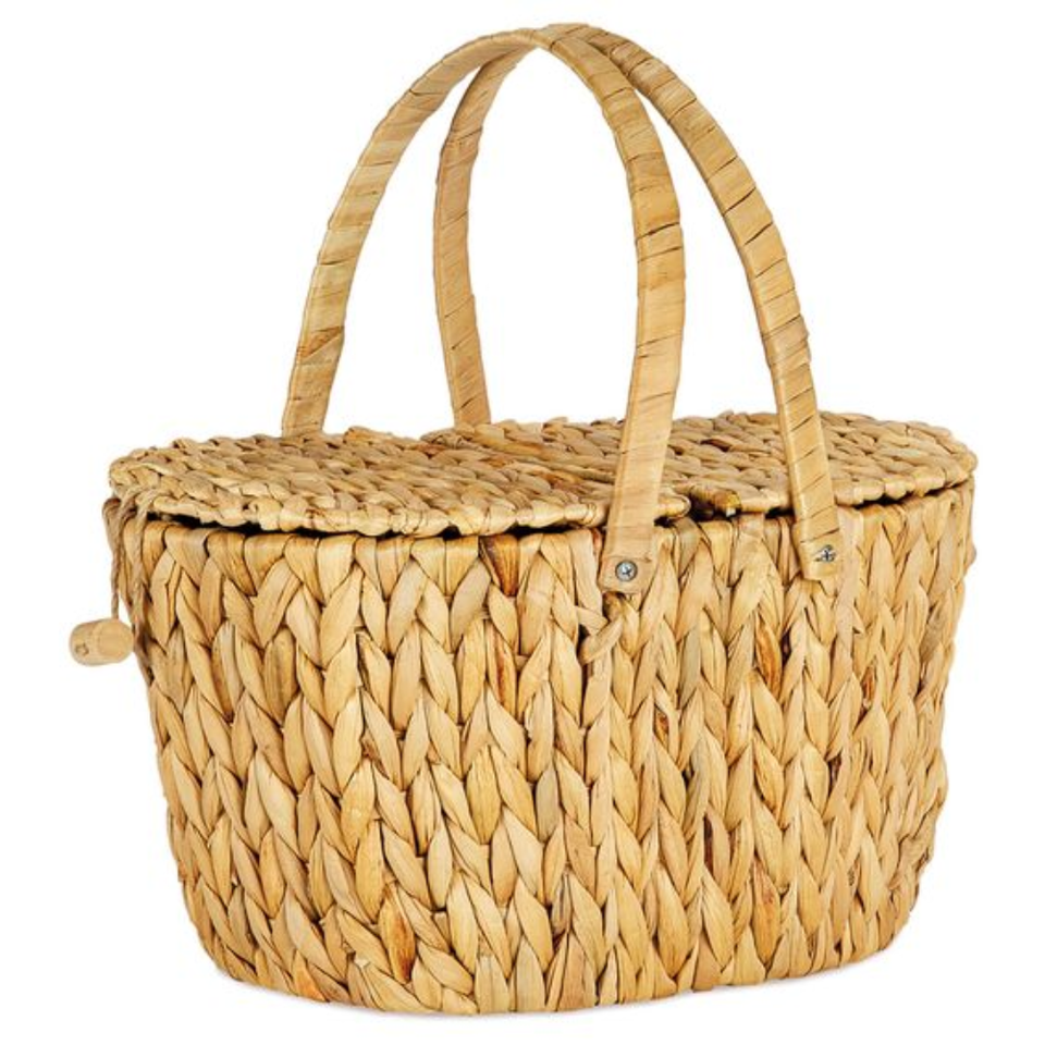 Water hyacinth picnic basket with foldable lids