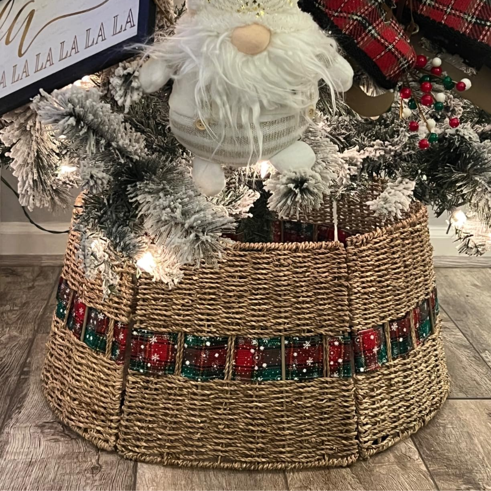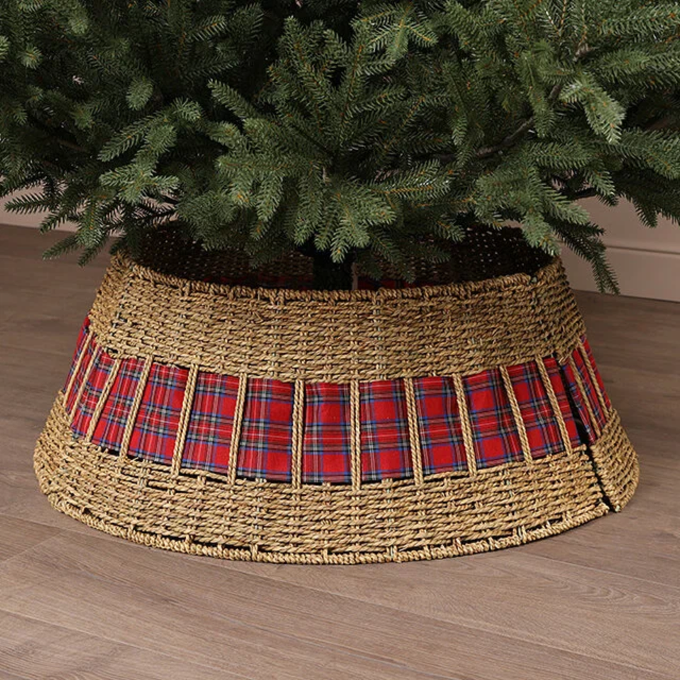 Best price high quality seagrass Christmas tree collar eco-friendly seagrass skirt with ribbon wholesale from Vietnam factory