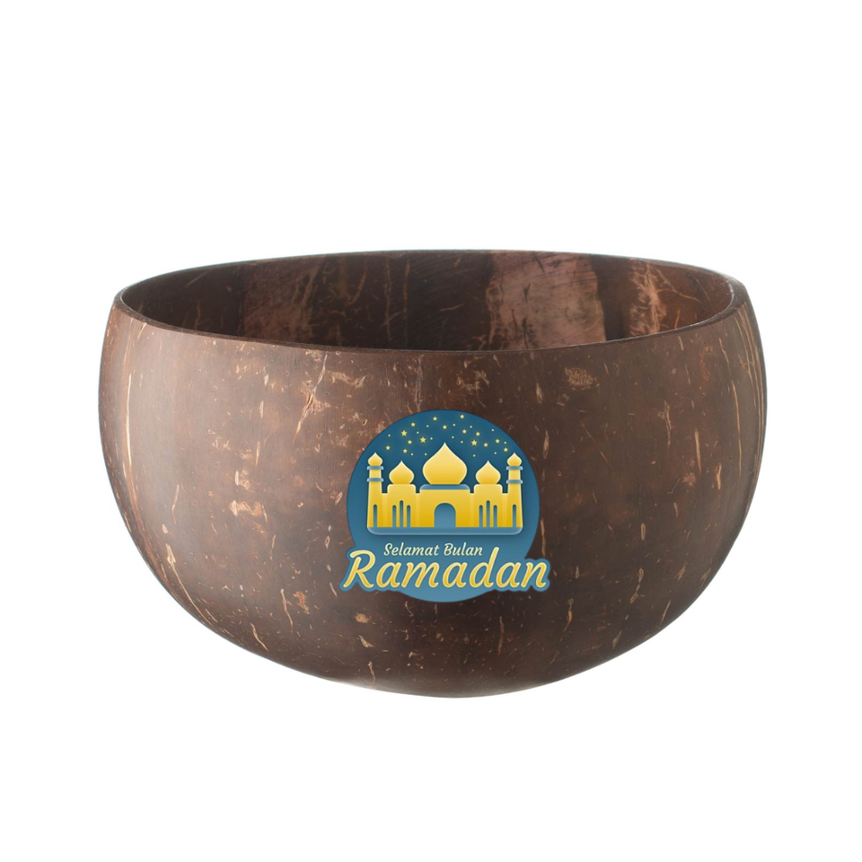 Best price natural printed coconut shell bowl for smoothie salad Ramadan Mubarak theme gift for Arabian made in Vietnam