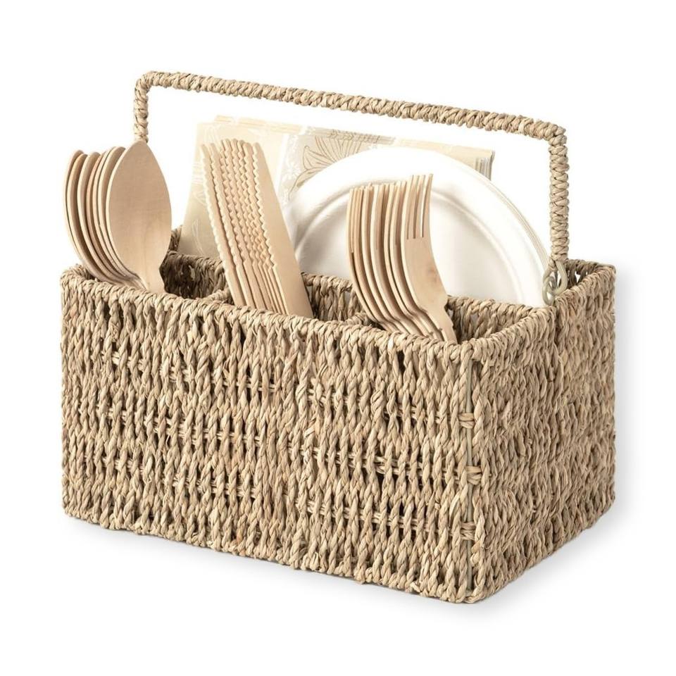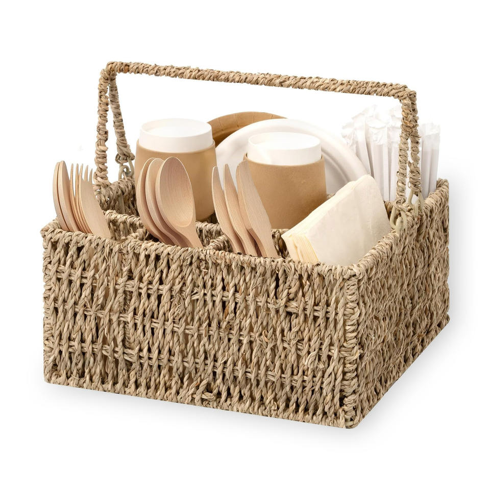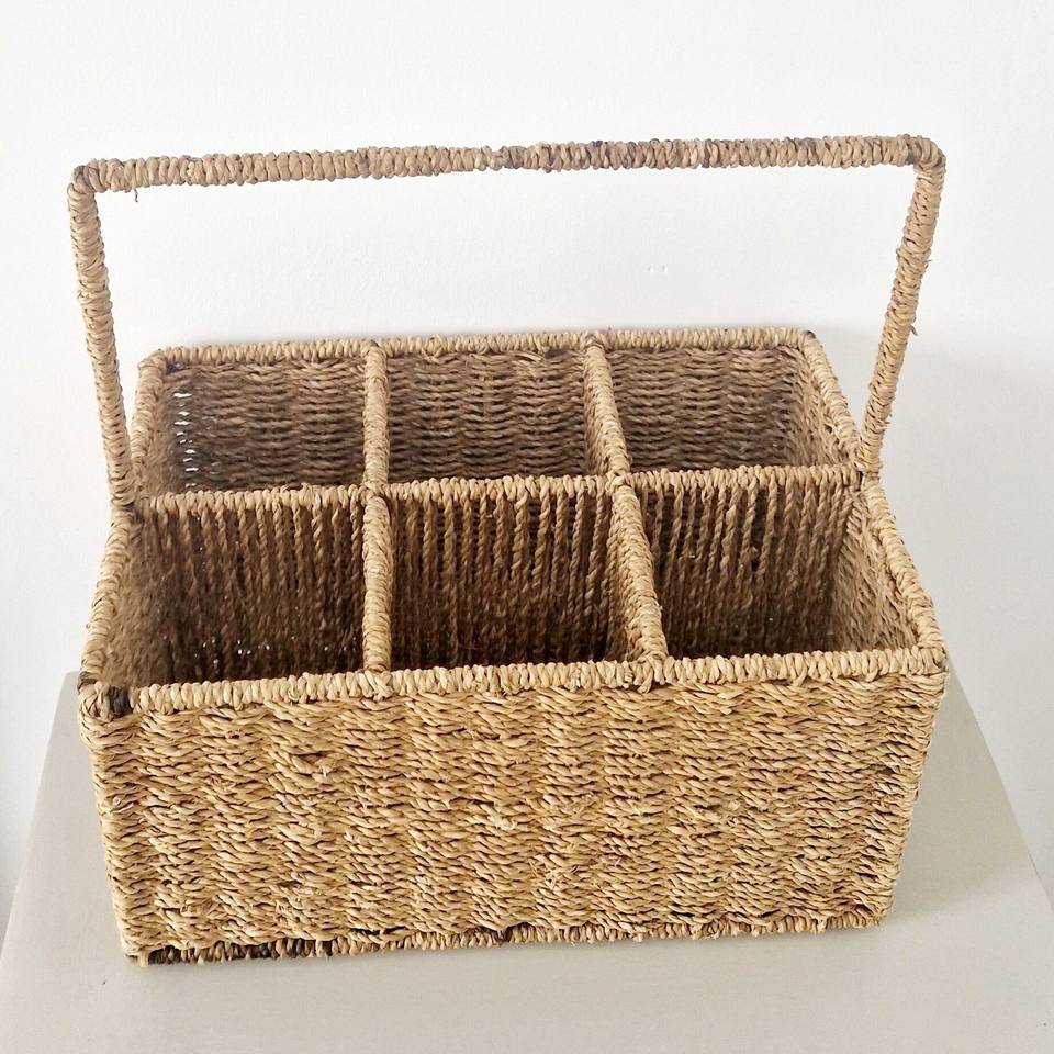 Best price natural seagrass straw utensil holder container wholesale sea grass cutlery caddy