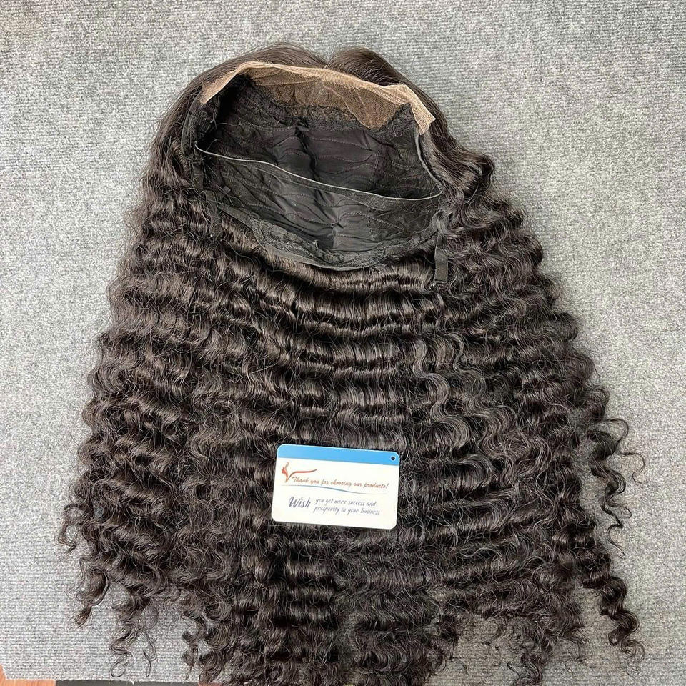 Best quality Deep Wavy Wig Black Color hair extensions , 100% Vietnamese raw hair no shedding no tangles no messy