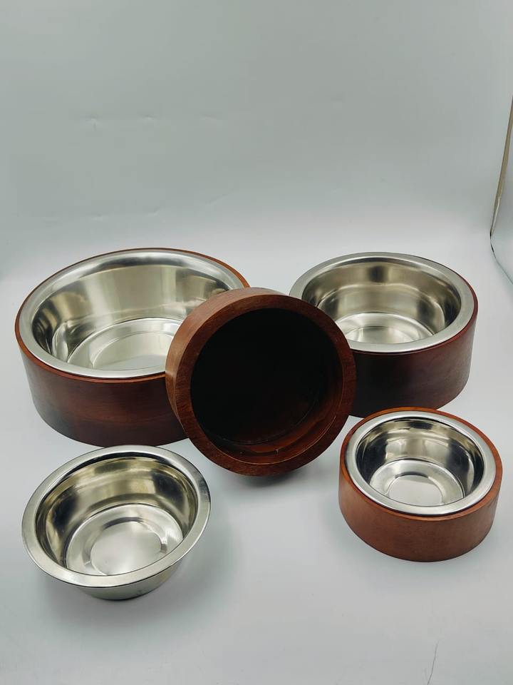 Best Quality wood Bowl Cylindrical Set of 4 Pcs Walnut Finishing Steel Bowls by crescent crafts