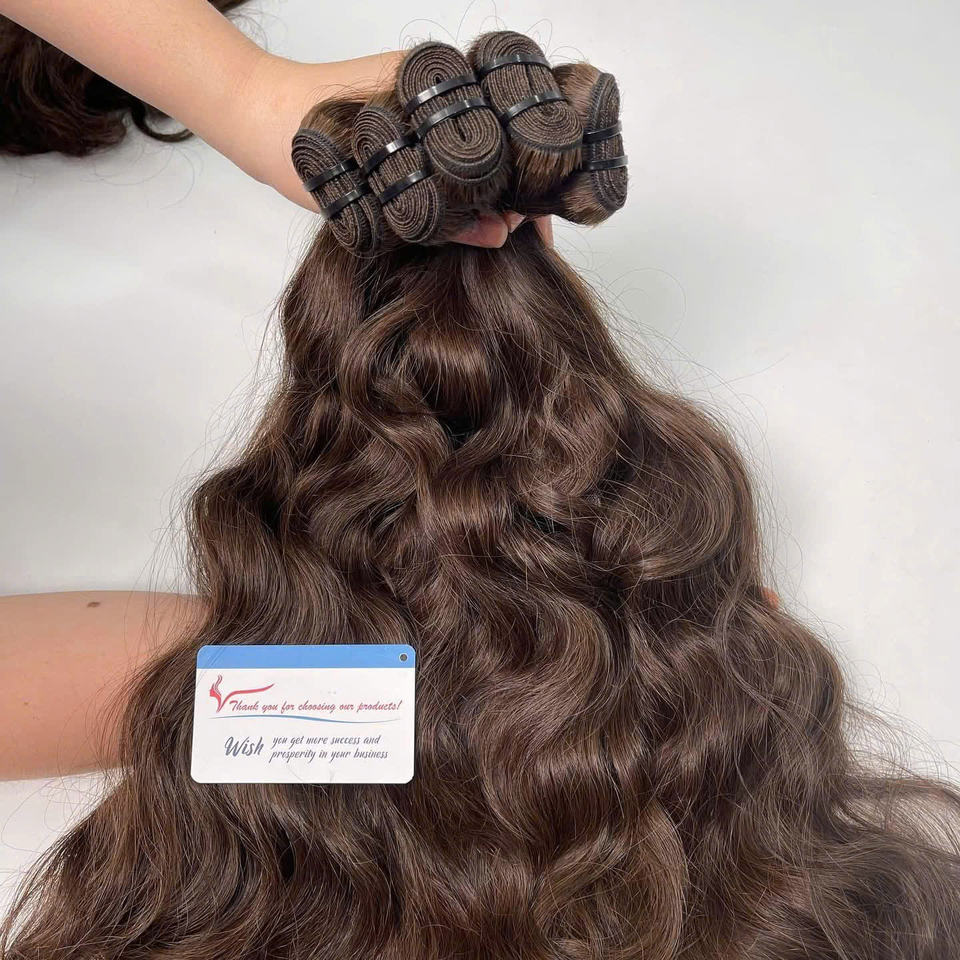 Best quality natural wavy weft brown color extensions , 100%Vietnamese raw hair no shedding no tangles no messy