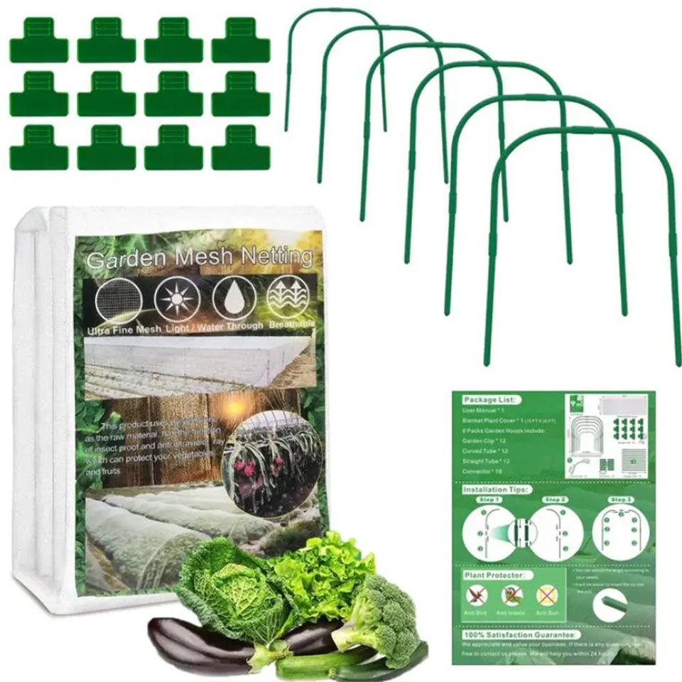 Best Selling 2.5*10M Plastic Garden Mesh Netting Custom Cutting Service with Fine Mesh Hoops Clips Insect Protection Tunnel