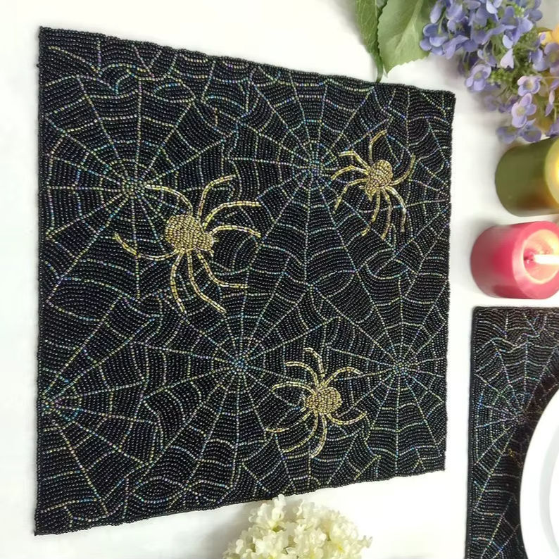 Best Seller Handmade Embroidery Beaded Placemats Set of 6 Eco-Friendly Luxury Wedding Table Decor Customizable Indian Style