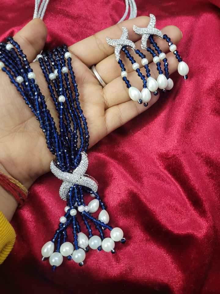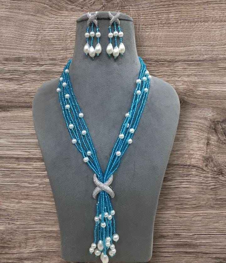Best selling Ad pendant with long mala with hydro beads suit combination matching color wedding wear necklace with earrings