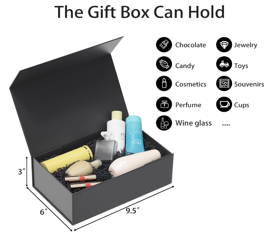 Best-selling Black Gift Box,9.5 X 6 X 3 Inch Gift Box, Rectangular Foldable, Wedding, Christmas, Birthday Gift Wrap