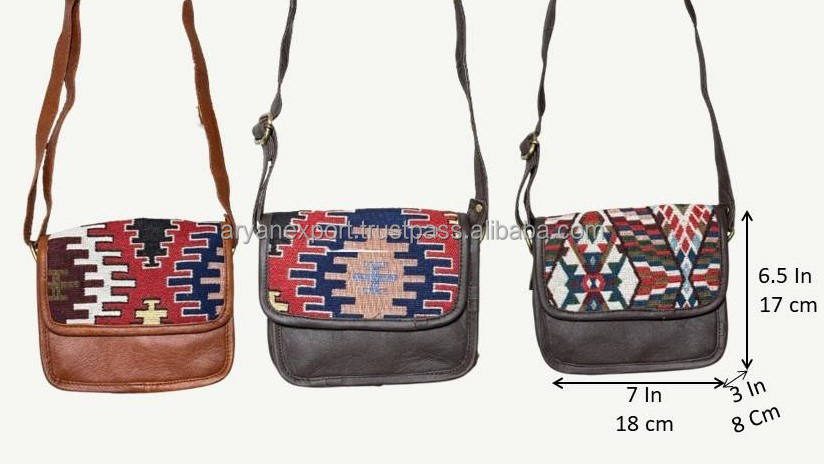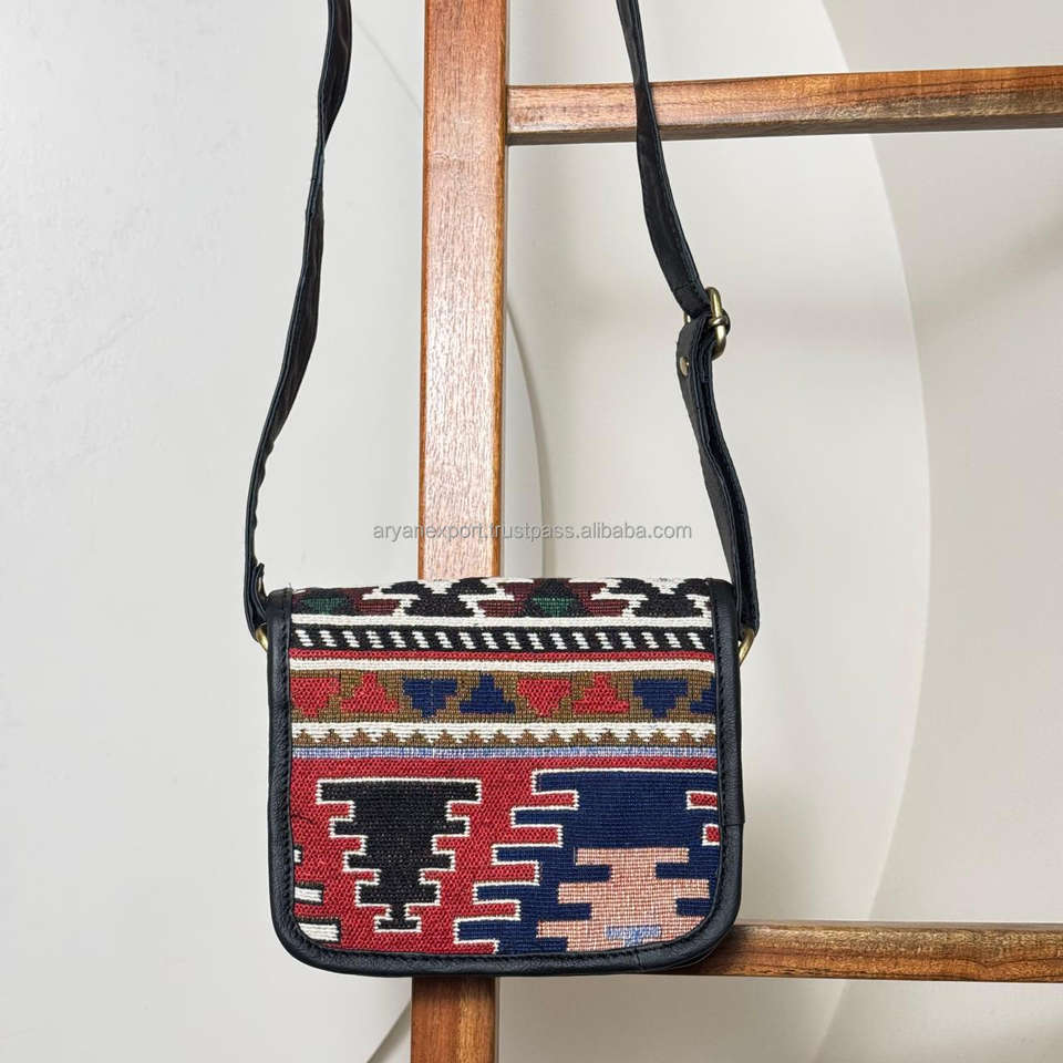 Best selling Handmade Ethnic Jacquard Kilim Leather Sling Bag Vintage Travel Bag with Adjustable Strap Crossbody Bag for Women's