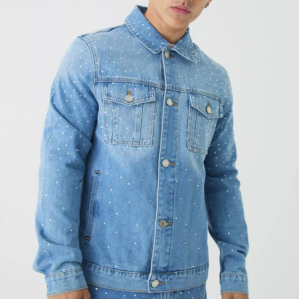 Best selling Men Denim jackets with rhinestone with latest fashion and casual use