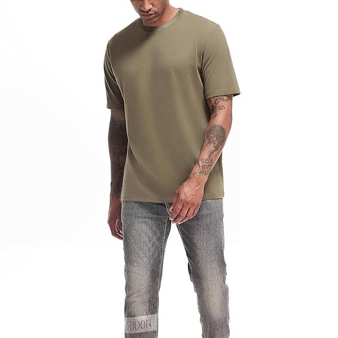 Best-selling Men's 100% Cotton Short Sleeve Casual T-Shirt Round Neck Shoulder Slope with Tape Solid Color Made in Bangladesh