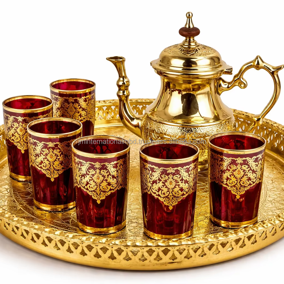 Best selling Moroccan Gold Tea Set 6 glasses one tray one teapot in gift box