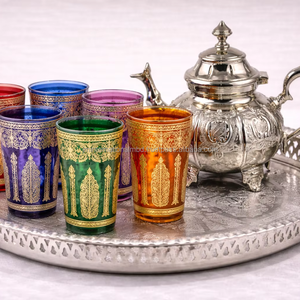 Best selling Moroccan Tea Set 6 glasses one tray one teapot in gift box