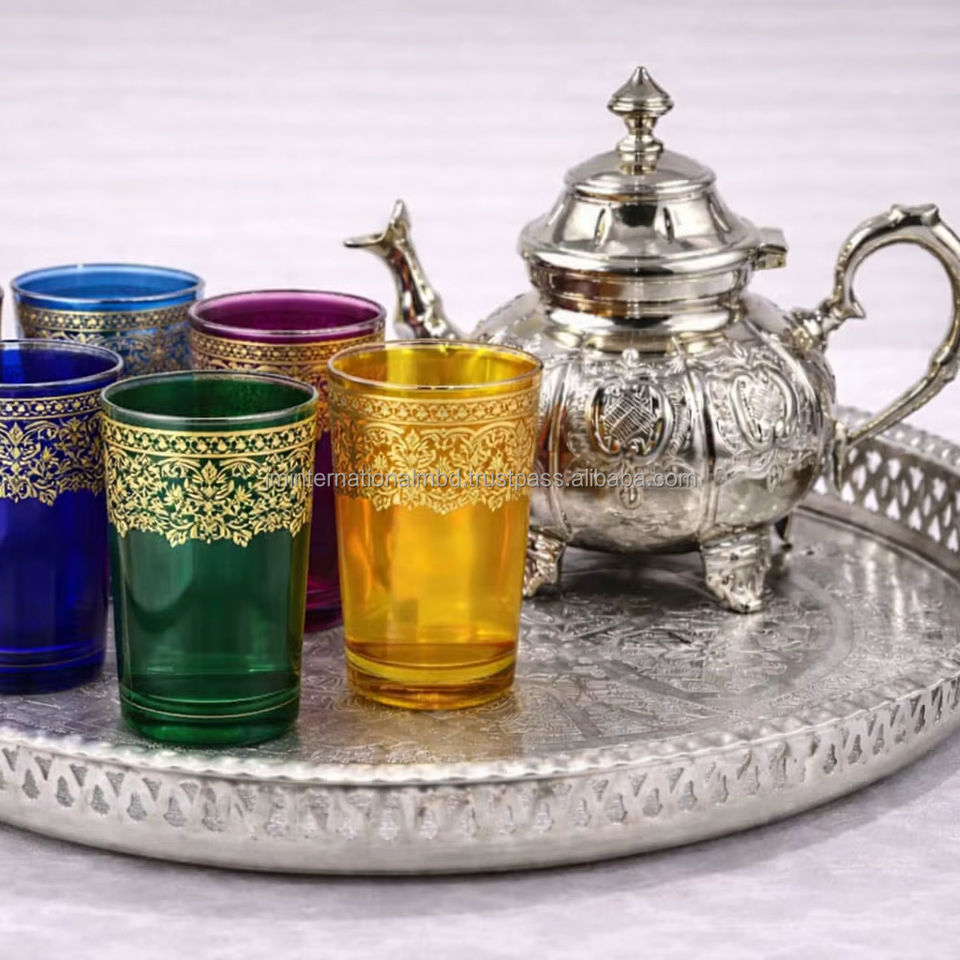 Best selling Moroccan Tea Set 6 glasses one tray one teapot in gift box