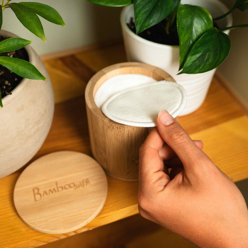 Best Selling Organic Natural Bamboo Facial Round Holder Reusable Makeup Remover Pads in Sustainable Bamboo Storage Box