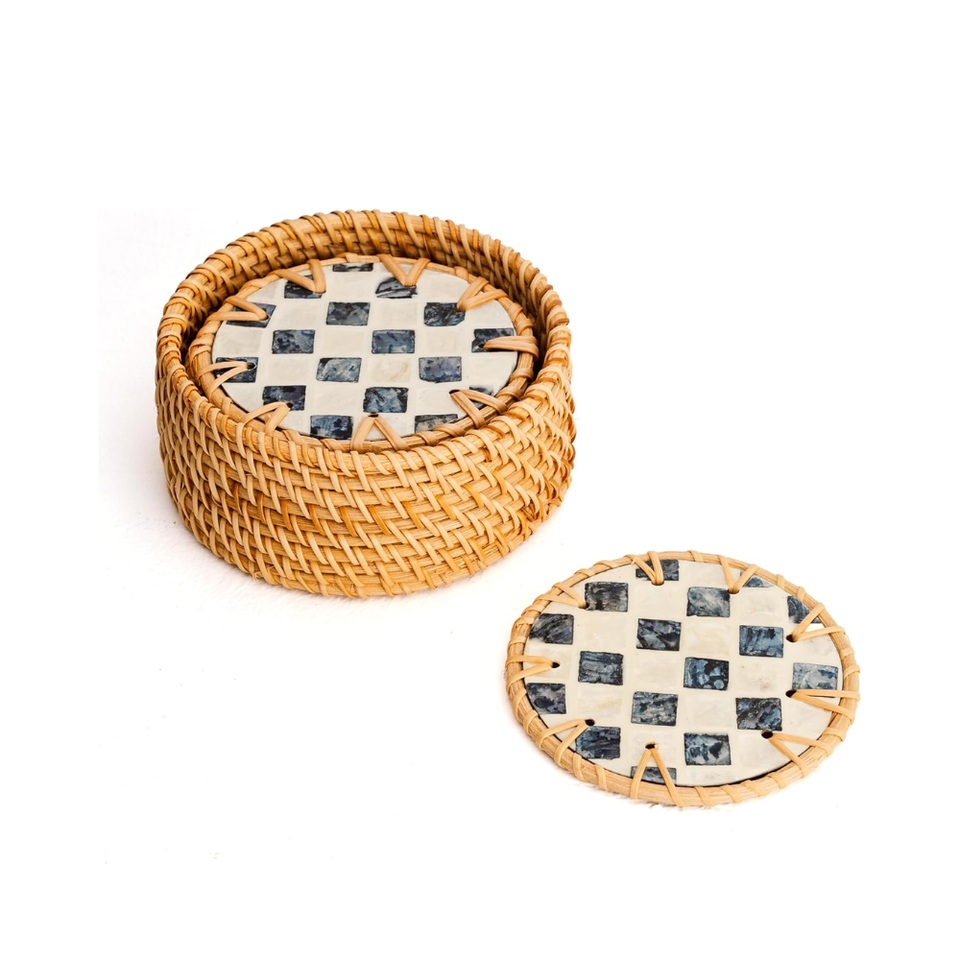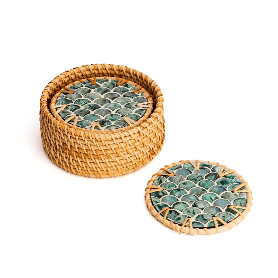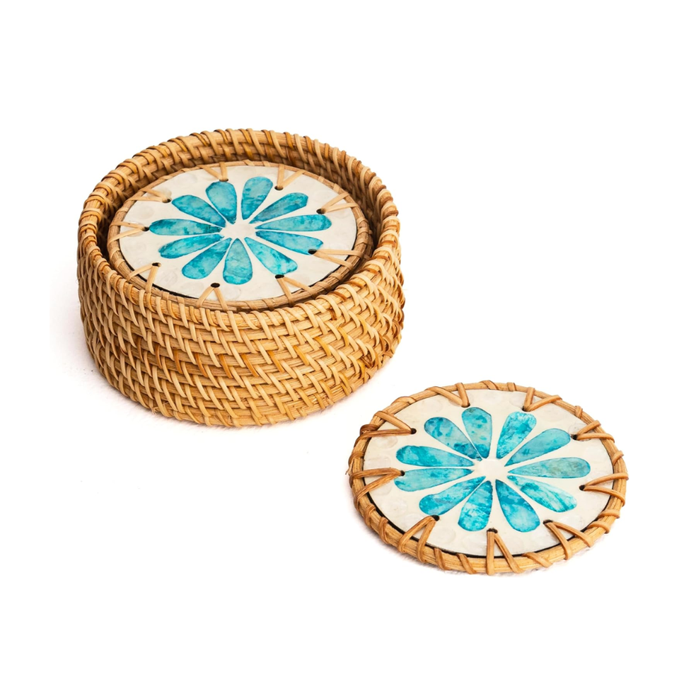 Mother of Pearl Rattan Coasters Set of 8 for Drinks