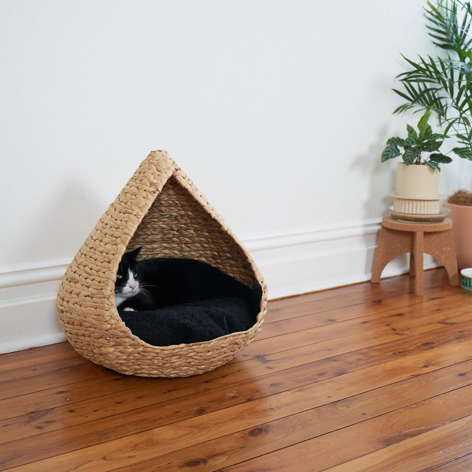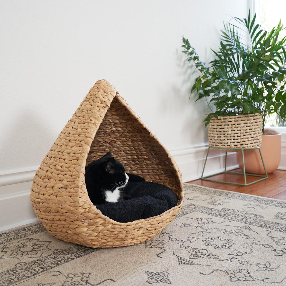 Best selling pet products water hyacinth teardrop shaped dog home cat nest natural bedding supplies for dogs and cats