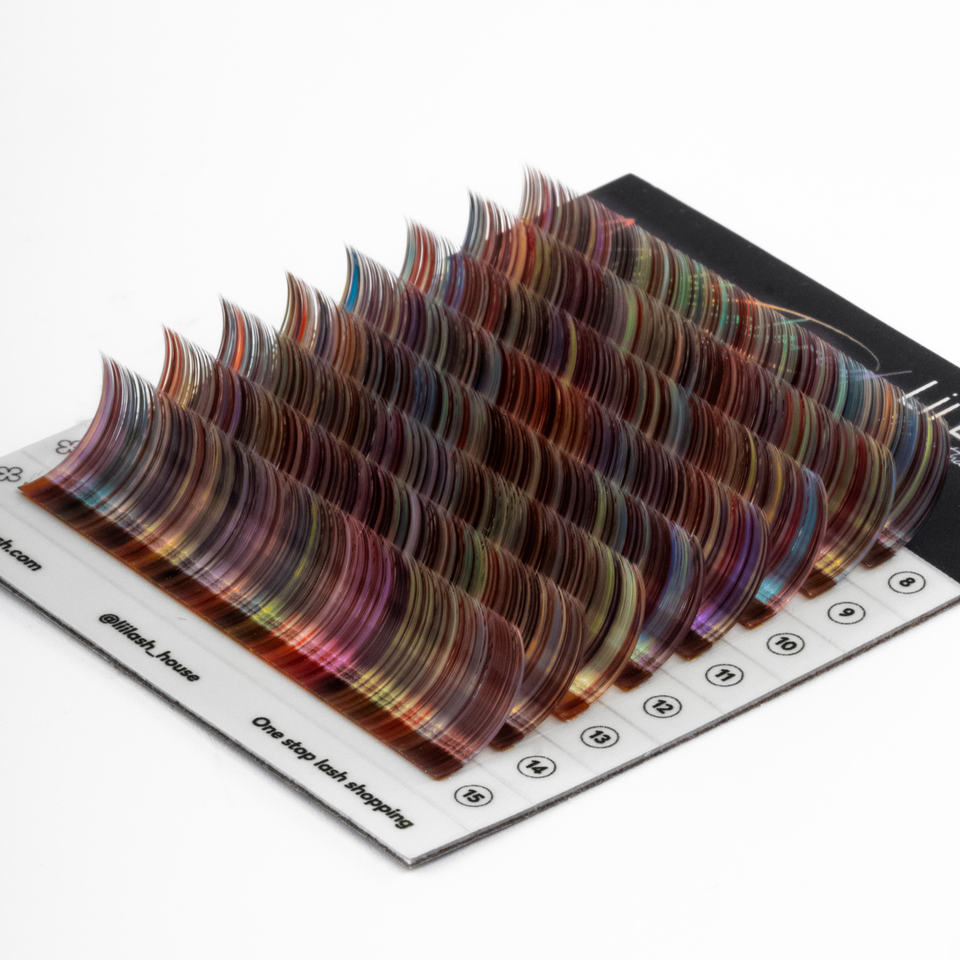 Best selling pre made lash fans color vibrant russian volume lashes j curl various shades 3d mink lash trays wholesale