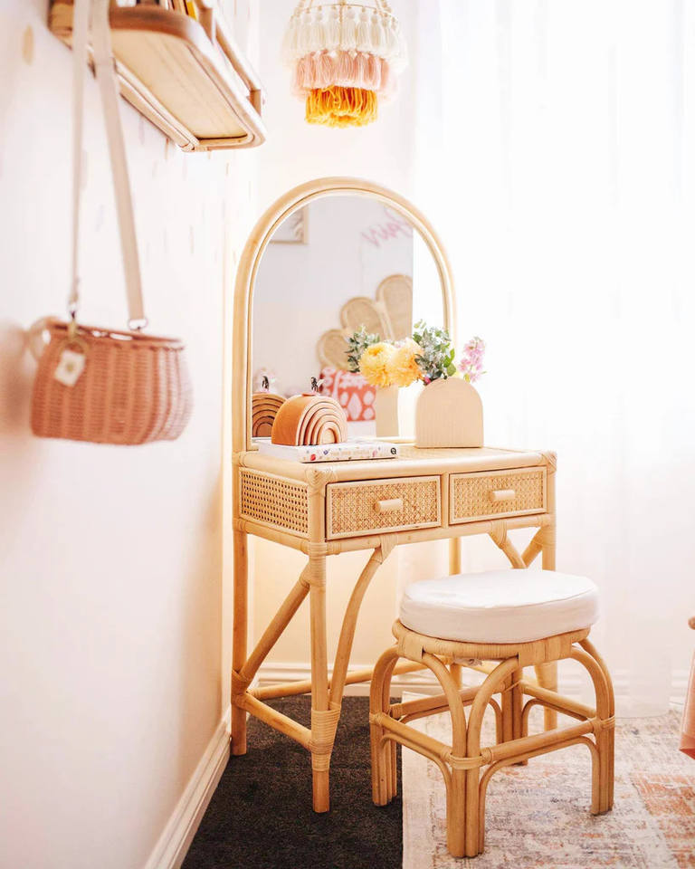 Best selling products-Rattan wicker children's dressing table and chair set. dressing table with large mirror