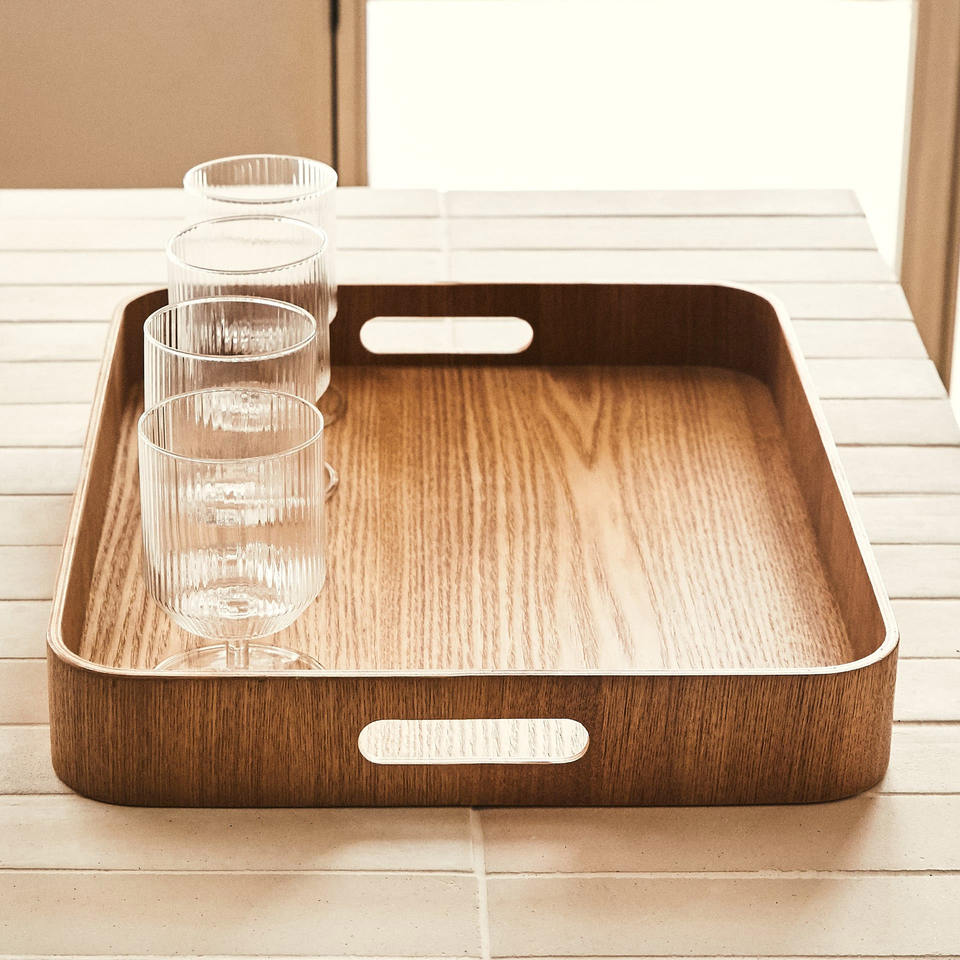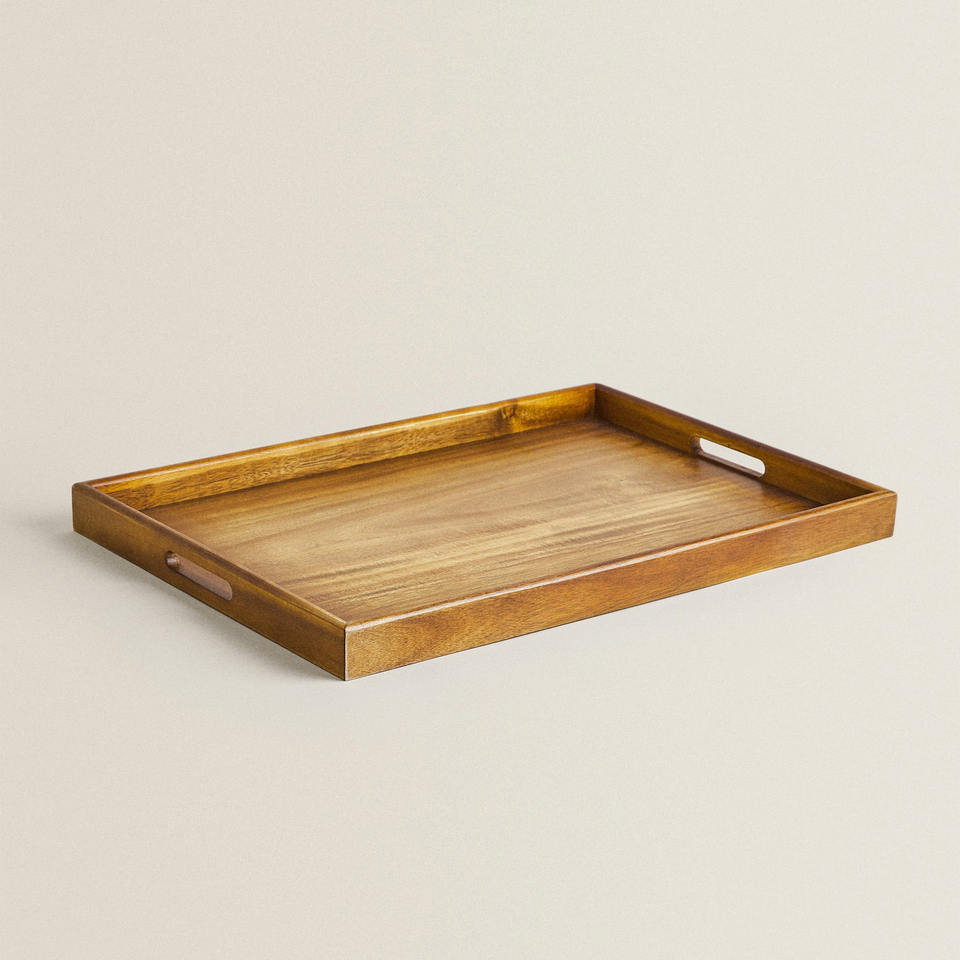 Best selling rectangular wood serving trays with handles eco friendly natural wooden tray OEM accept