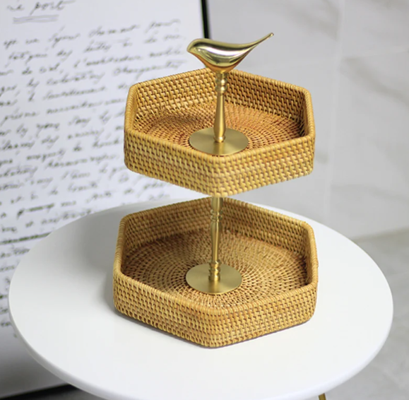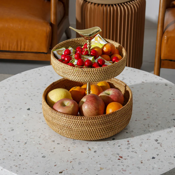 Bestseller Handmade Rattan Woven Double-deck Storage Basket