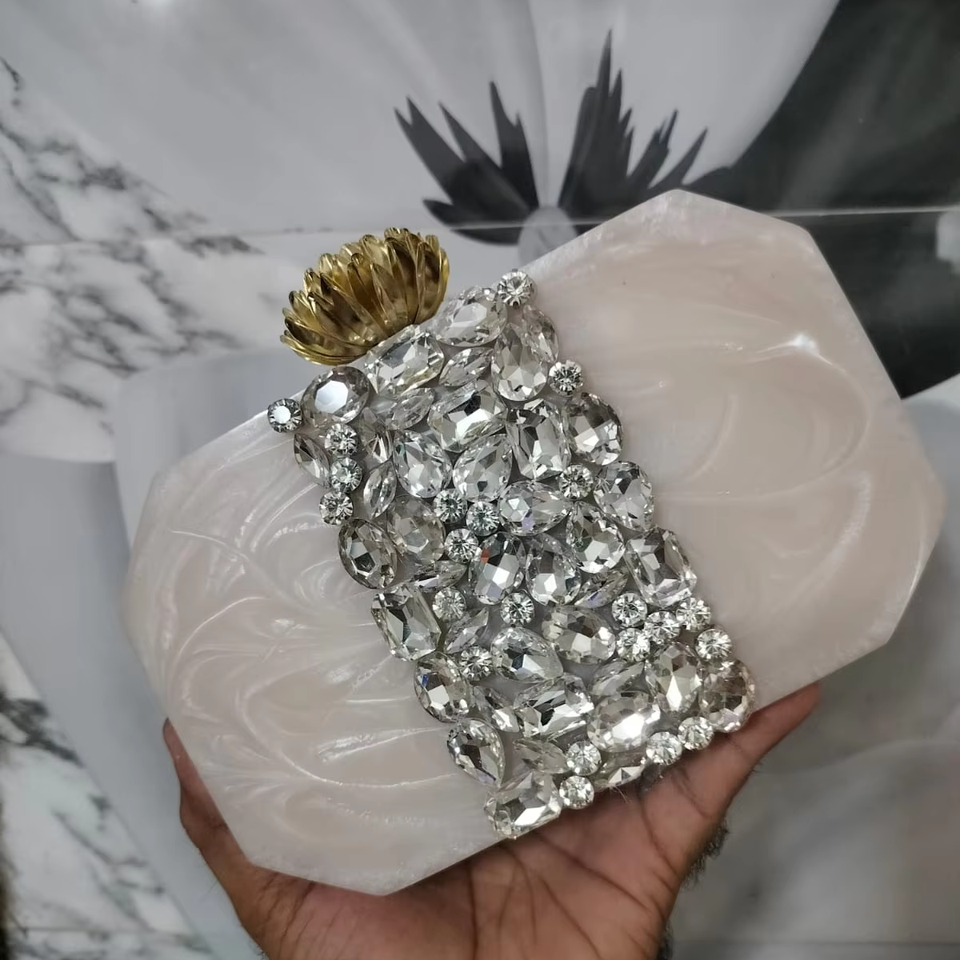 Bestseller elegant resin clutch for ladies fashion party wedding handmade glossy premium style