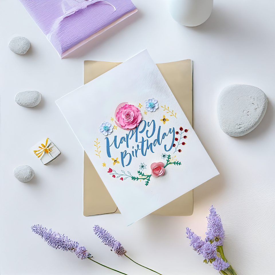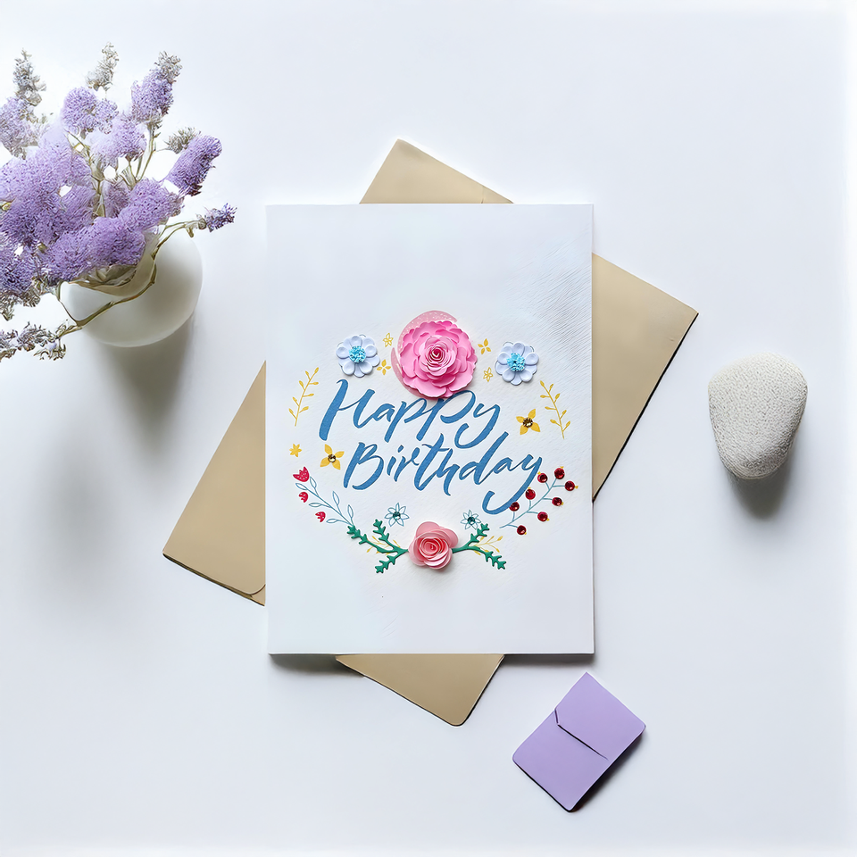 Bestselling Vietnam Eco-Friendly Customized Paper Greeting Card 6-Color Digital Printing Happy Birthday Quilling Design Gold