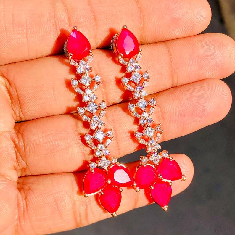 Product Name:Bethany Ciotola Inspired Ruby and Austrian Crystal Earrings