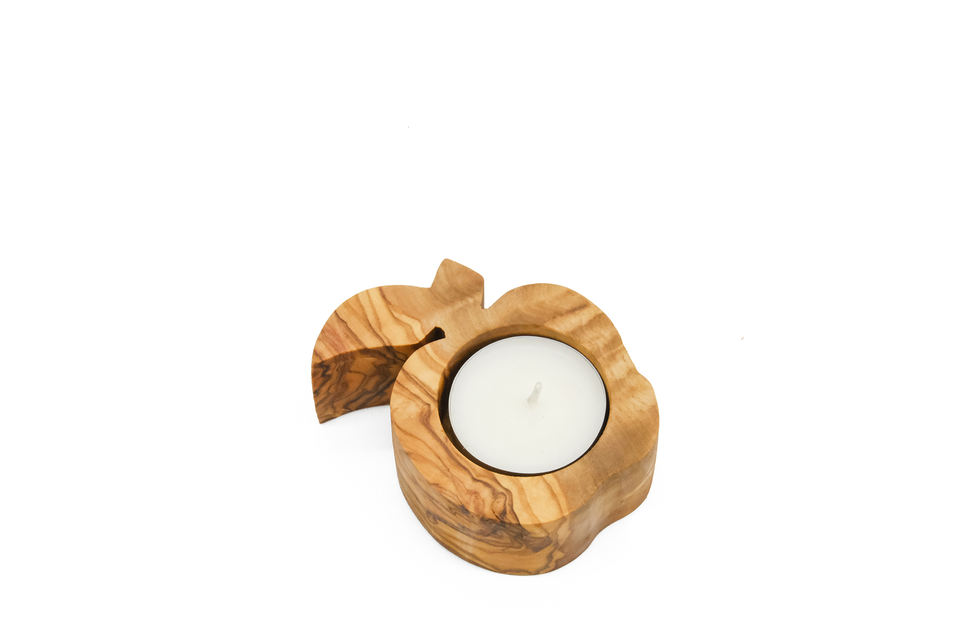 Bethlehem Handmade Olive Wood Jar Shape Tealight Holder for Home Decoration