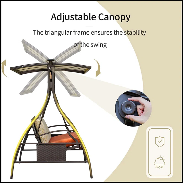 Bethly 2-Person Modern Farmhouse Style Wood Porch Swing Stand Outdoor Bench Swing Removable Cushion for Living Room Parks