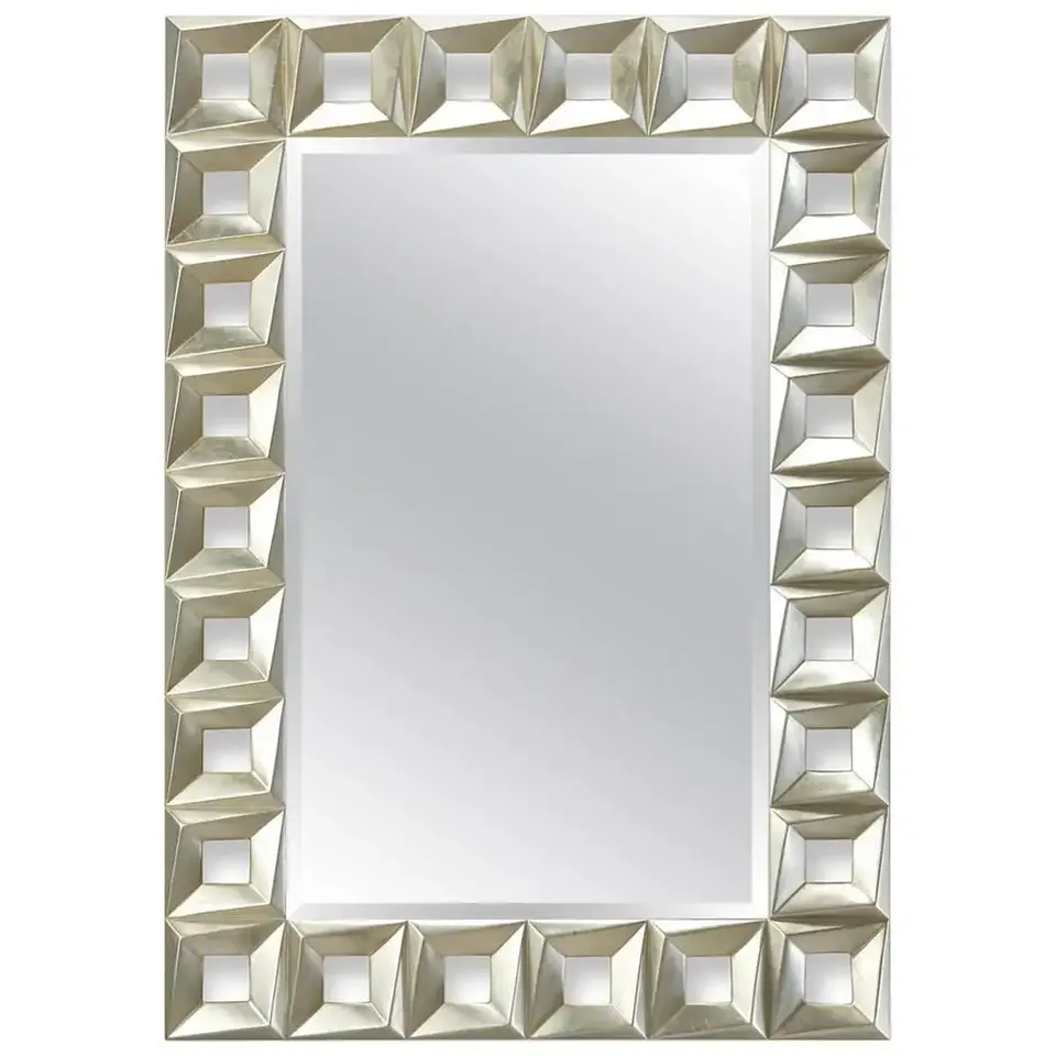 Modern Silver Rectangular Decorative Beveled Wall Mirror Customizable Shape for Living Room Bedroom Bathroom Entryway