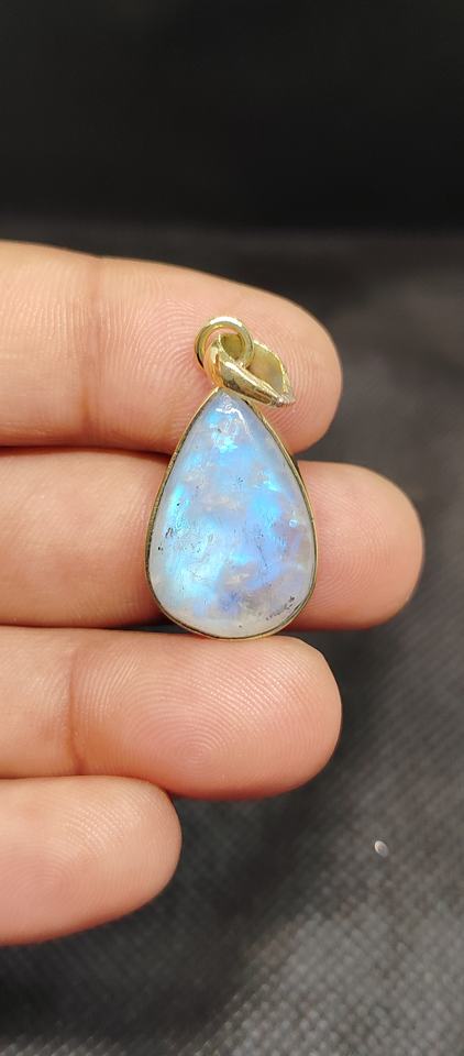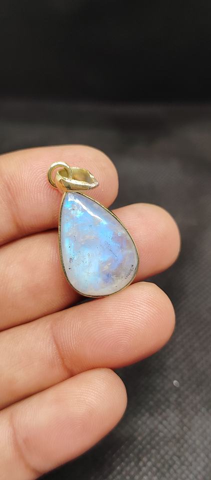 Bezel Rainbow Moonstone Moon Pendant Brass gold Plated Jewelry Trendy Necklace Gift for Mother's Day Gift