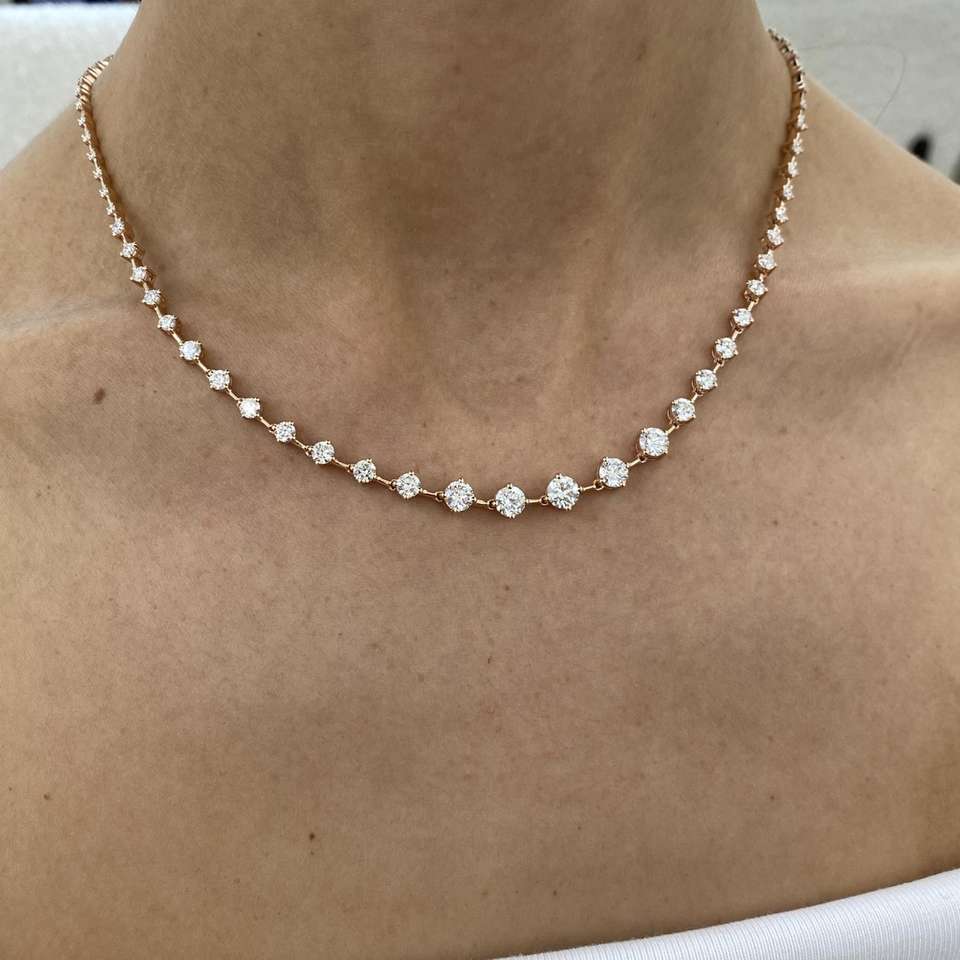 Bezel Set Round Cut Moissanite Diamond Tennis Necklace 925 Silver with Gold Plated for Engagement Wedding Party Gift for Partner